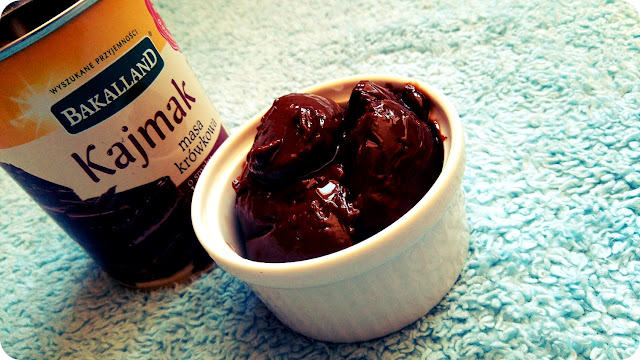 Nie ma nic prostszego niż zrobić domowa masę kajmakowa z dodatkami. Wystarczy mleko skondensowane w puszce + kakao i ewentualnie cukier i mamy smakowy kajmak :)