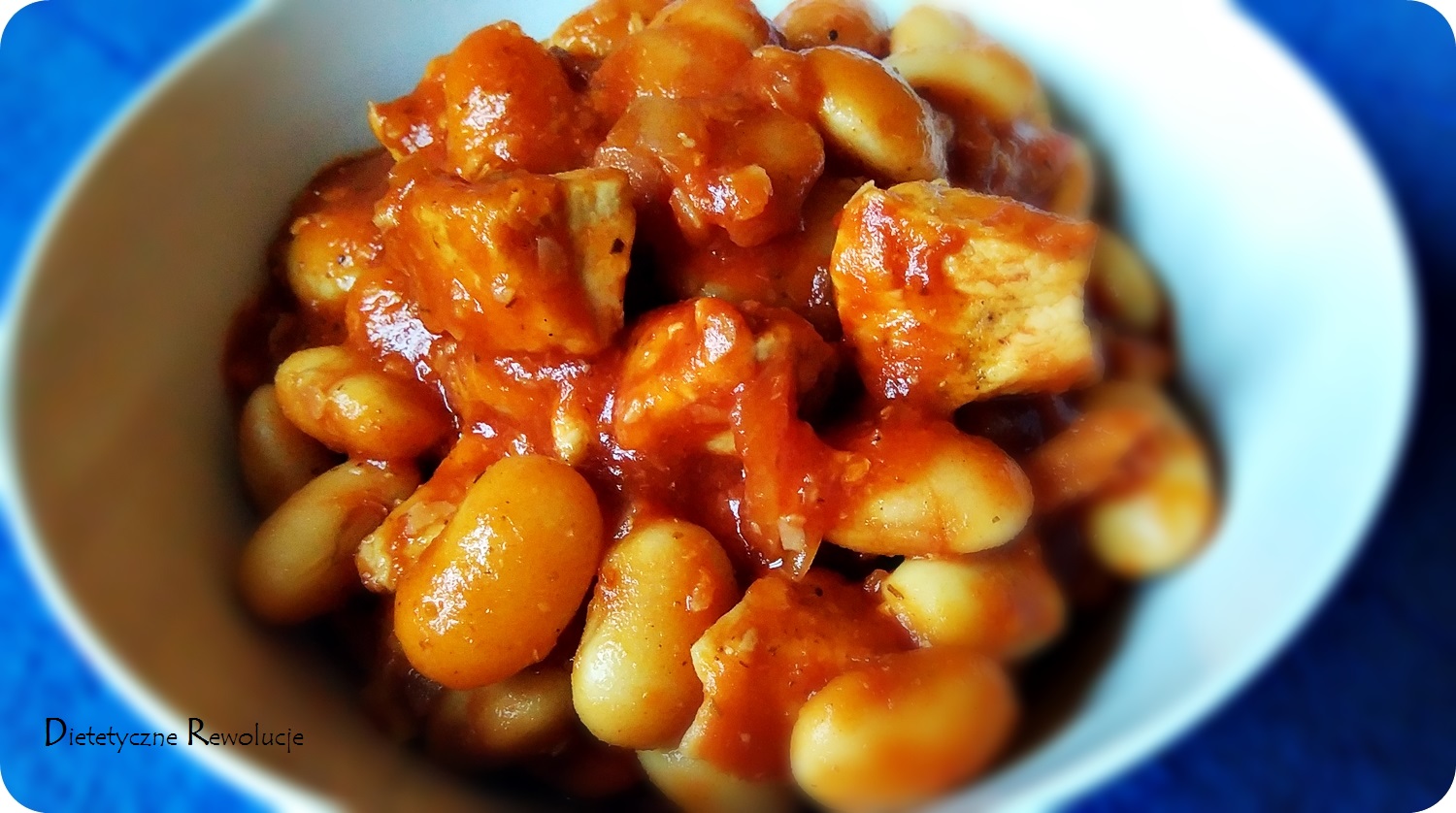 Zdrowe odżywianie to nie dieta- już kilkakrotnie to powtarzałam. Nie trzeba ze wszystkiego rezygnować, można i nawet trzeba delikatnie modyfikować. Cieszmy się jedzeniem to jedna z niewielu przyjemności w życiu :)Ostatnio miałam ochotę na fasolkę po bretońsku. Zazwyczaj zjada się z kiełbasą, która jest tłusta no i z mnóstwem dodatków. Wystarczy zamienić ją na kurczaka i mamy pyszna, sycąca potrawę. Kiedyś używałam fasolki z puszki ale wiadomo jest tam sól, często cukier. A warto namoczyć dzień wcześniej i można następnego gotować :)