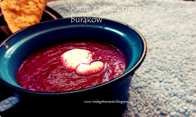 - Po upieczeniu zostawiamy do przestygnięcia i zdejmujemy skórkę. Cebule, buraki i czosnek kroimy na kawałki (nie musza być male bo potem i tak wszystko będzie zblendowane)