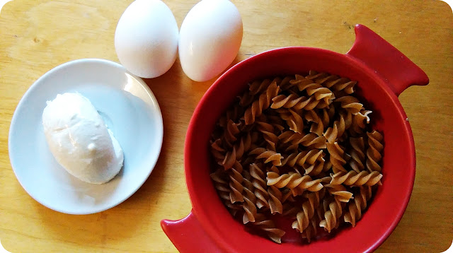 Taki makaron często robię mojemu dwulatkowi, zdrowy makaron, jajka, tłuszcz w postaci masła klarowanego i mozzarella. Pyszne i sycące śniadanie lub obiad