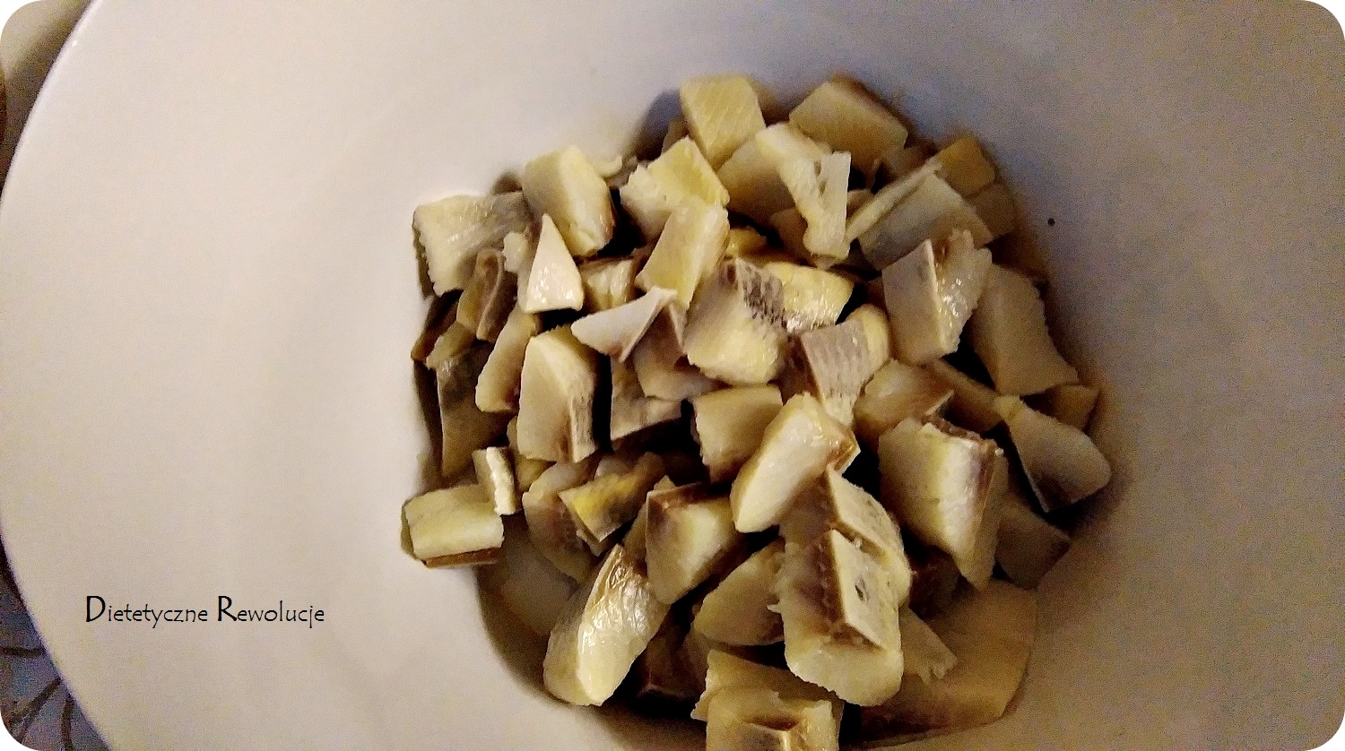 1. Śledzie moczymy cala noc w zimnej wodzie. Następnie dokładnie płuczemy i kroimy na mniejsze kawałki