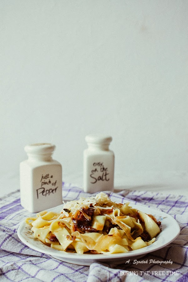 W miedzyczasie gotujemy makaron i odcedzamy zostawiając trochę wody.