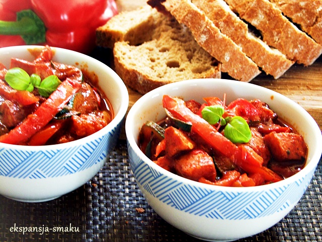 Leczo z cukinią i kiełbasą na koncentracie pomidorowym