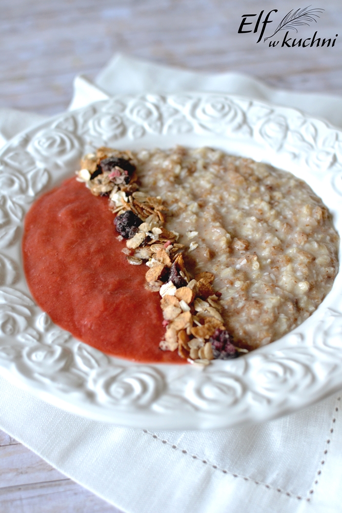 Owsianka z musem truskawkowo-rabarbarowym