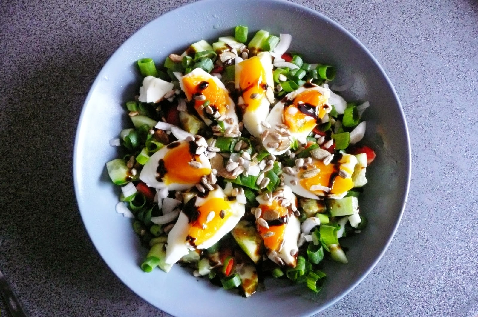 Sałatka ze świeżych warzyw z dodatkiem jajka