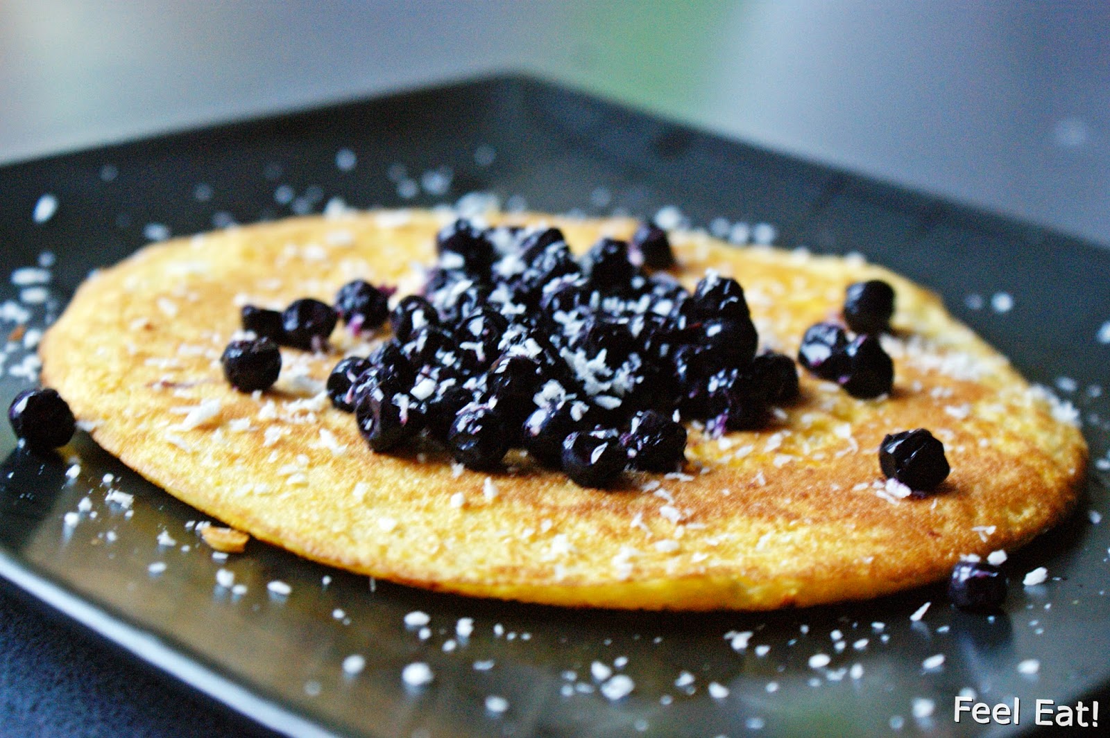 Kolejna propozycja omletu, szybkiego w przygotowaniu i bogatego w białko. Mógłby być słodszy, ale to trochę wina moich kwaskowatych (zamrożonych w lecie) owoców. Podaję składniki na jedną porcję, czyli jeden omlet.