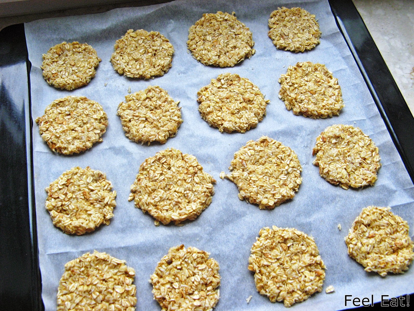 Połączyć ze sobą wszystkie wymienione wyżej składniki, dokładnie zagnieść. Blachę wyłożyć papierem do pieczenia, mokrymi dłońmi formować ciasteczka z ciasta i kłaść je na blachę. Ciasteczka piec w 180 stopniach przez około 20 minut aż się przyrumienią.