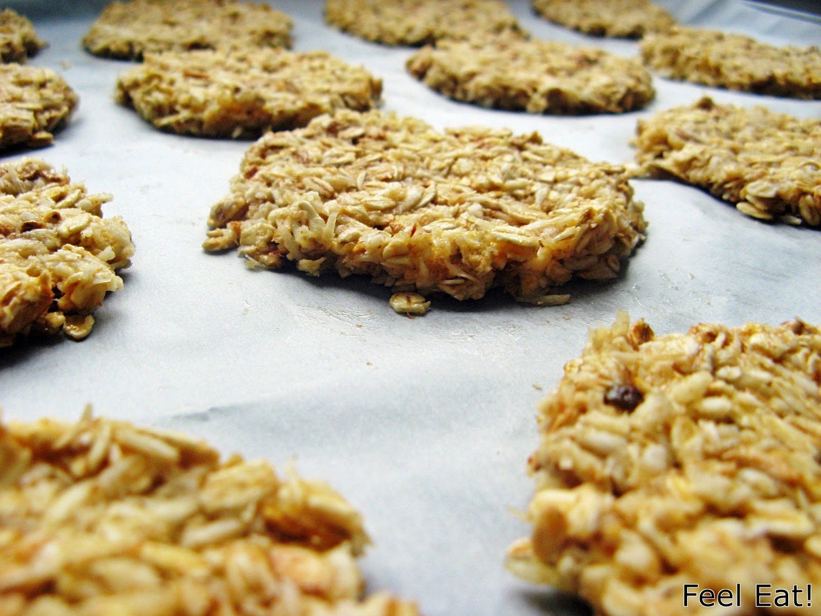 Kolejne zdrowe, ale niestety nie niskokaloryczne (wina wiórków kokosowych) ciasteczka, idealne na przegryzkę do kawy lub na drugie śniadanie. Szybkie, tanie i łatwe do przygotowania. Z podsnych składników wychodzi około 18 dość dużych ciasteczek.Składniki: