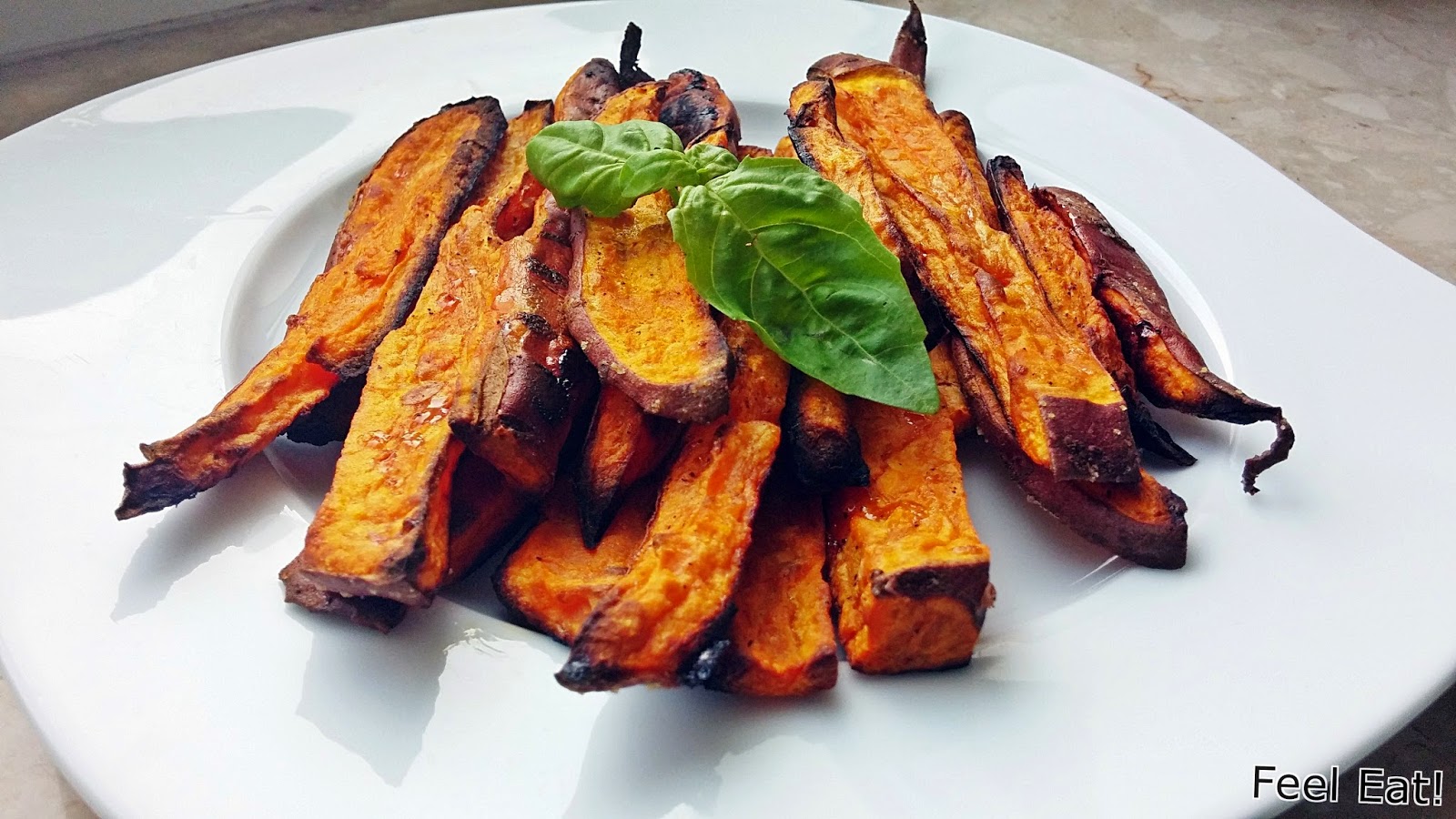 Trochę o wartościach odżywczych batatów... Warzywo to jest uważane za jedno z najbardziej odżywczych w przyrodzie. Dla porównania wartość odżywcza bulw batata jest o ok. 50% wyższa niż bulw ziemniaka. Jest to również znakomite źródło błonnika pokarmowego. Głównym materiałem zapasowym bulw batata są węglowodany (skrobia i cukry proste), dlatego bulwy słodkawe w smaku. Odmiany o żółtym miąższu, zawierają również znaczne ilości karotenów. Jego bulwy są również bogatym źródłem białka, tłuszczu i witamin rozpuszczalnych w tłuszczach. Zawierają też (w 100 g), sporo związków mineralnych, takich jak: potas – 373 mg, chlor – 85 mg, fosfor – 49 mg, wapń – 30 mg, siarka – 26 mg, magnez – 24 mg, sód – 13 mg, jod – 4,5 mg, żelazo – 0,8 mg,a także niewielkie ilości manganu, miedzi, molibdenu i selenu. Dzięki zawartości witamin, takich jak: witamina C, prowitamina A, tiamina, ryboflawina, niacyna, kwas pantotenowy, witamina B6, folacyna, cholina, a- i b-tokoferol oraz witaminy K, bulwy batata mogą być cenne w diecie osób zagrożonych utratą wzroku i tzw. chorobami cywilizacyjnymi (miażdżyca, otyłość, cukrzyca, neurodegeneracja). Bataty mają istotne znaczenie dla zdrowia człowieka, również jako źródło naturalnych przeciwutleniaczy.Mnie to wszystko przekonało, by zrobić pierwsze podejście do tego warzywa. Po wyjęciu z piekarnika frytki były chrupiące, chociaż jak na mój gust trochę zbyt słodkie. Zapakowałam je w pojemnik (gdy były zimne) i zabrałam na obiad na uczelnię, niestety po tym czasie znacznie oklapły. Bataty same w sobie są dobre, ale nie mogłabym ich zjeść za dużo, można się nimi zasłodzić dokładnie tak samo jak słodyczami! Z jednego batata wyszło mi dość sporo frytek, nie zjadłam wszystkich na jeden posiłek, dlatego rozdzieliłam kalorie z przygotowanych frytek na pół (czyli wyszły dwie porcje). Smacznego! Wartość kaloryczna całego przepisu: 420kcalBiałko: 5,5gTłuszcze: 13,7gWęglowodany: 70,4g