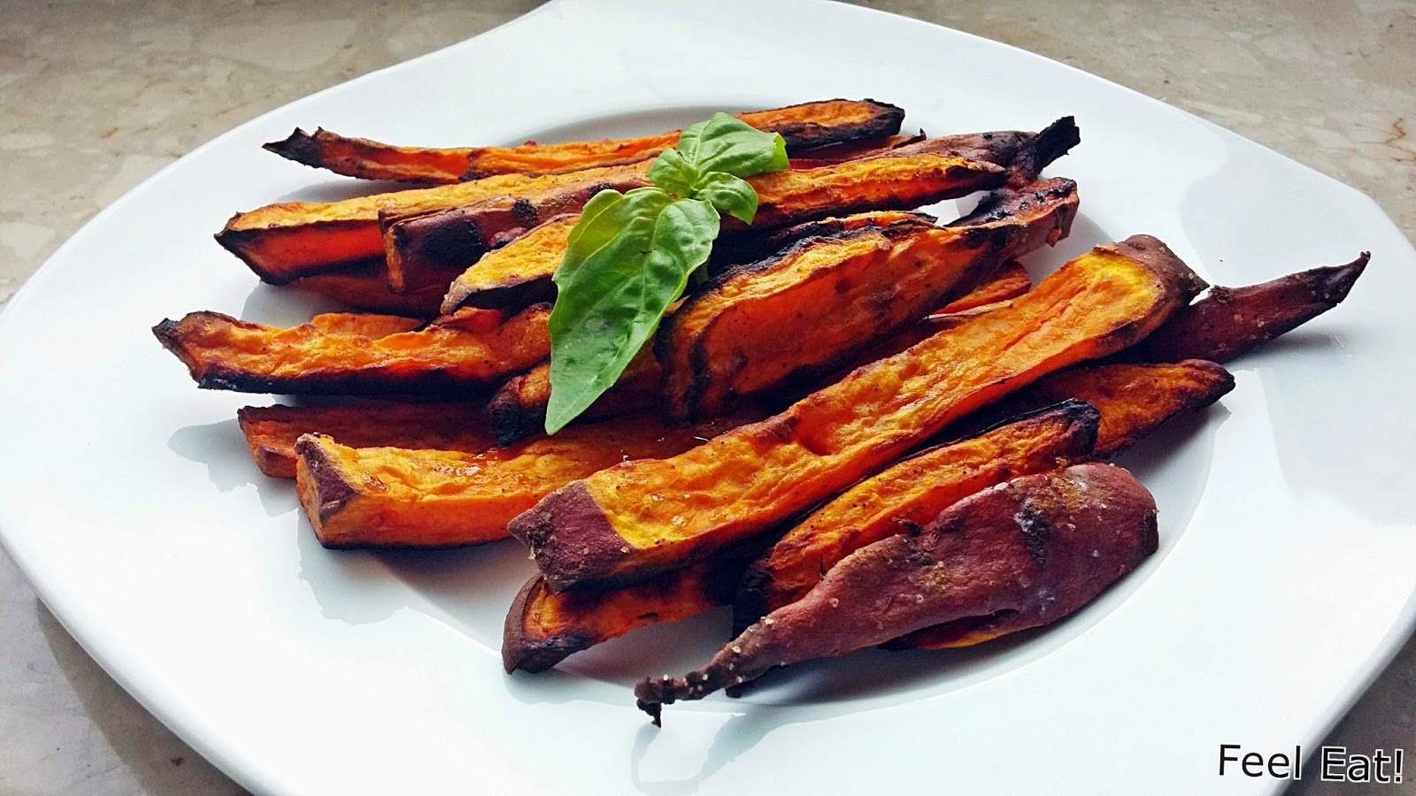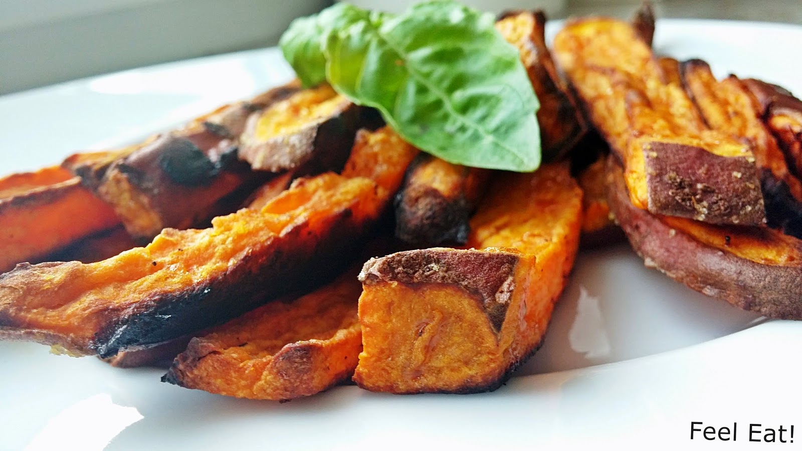 Trochę o wartościach odżywczych batatów... Warzywo to jest uważane za jedno z najbardziej odżywczych w przyrodzie. Dla porównania wartość odżywcza bulw batata jest o ok. 50% wyższa niż bulw ziemniaka. Jest to również znakomite źródło błonnika pokarmowego. Głównym materiałem zapasowym bulw batata są węglowodany (skrobia i cukry proste), dlatego bulwy słodkawe w smaku. Odmiany o żółtym miąższu, zawierają również znaczne ilości karotenów. Jego bulwy są również bogatym źródłem białka, tłuszczu i witamin rozpuszczalnych w tłuszczach. Zawierają też (w 100 g), sporo związków mineralnych, takich jak: potas – 373 mg, chlor – 85 mg, fosfor – 49 mg, wapń – 30 mg, siarka – 26 mg, magnez – 24 mg, sód – 13 mg, jod – 4,5 mg, żelazo – 0,8 mg,a także niewielkie ilości manganu, miedzi, molibdenu i selenu. Dzięki zawartości witamin, takich jak: witamina C, prowitamina A, tiamina, ryboflawina, niacyna, kwas pantotenowy, witamina B6, folacyna, cholina, a- i b-tokoferol oraz witaminy K, bulwy batata mogą być cenne w diecie osób zagrożonych utratą wzroku i tzw. chorobami cywilizacyjnymi (miażdżyca, otyłość, cukrzyca, neurodegeneracja). Bataty mają istotne znaczenie dla zdrowia człowieka, również jako źródło naturalnych przeciwutleniaczy.Mnie to wszystko przekonało, by zrobić pierwsze podejście do tego warzywa. Po wyjęciu z piekarnika frytki były chrupiące, chociaż jak na mój gust trochę zbyt słodkie. Zapakowałam je w pojemnik (gdy były zimne) i zabrałam na obiad na uczelnię, niestety po tym czasie znacznie oklapły. Bataty same w sobie są dobre, ale nie mogłabym ich zjeść za dużo, można się nimi zasłodzić dokładnie tak samo jak słodyczami! Z jednego batata wyszło mi dość sporo frytek, nie zjadłam wszystkich na jeden posiłek, dlatego rozdzieliłam kalorie z przygotowanych frytek na pół (czyli wyszły dwie porcje). Smacznego! Wartość kaloryczna całego przepisu: 420kcalBiałko: 5,5gTłuszcze: 13,7gWęglowodany: 70,4g