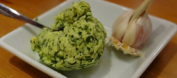 Więc tak se siedzę i siedzę i dumam o tym i o owym i nahle, out of the blue, przychodzi mi do głowy, że masło czosnkowe. A może to było inaczej, a może to było tak, że siedziałam w knajpie z koleżankami, sącząc (właśnie tak!) poranną cavę (ktoś jednak ...