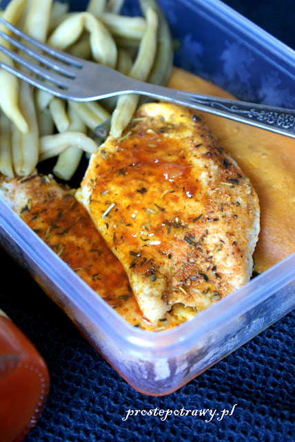 Filet z kurczaka lekko oprószyć ulubionymi ziołami i usmażyć na oleju lub maśle klarowanym