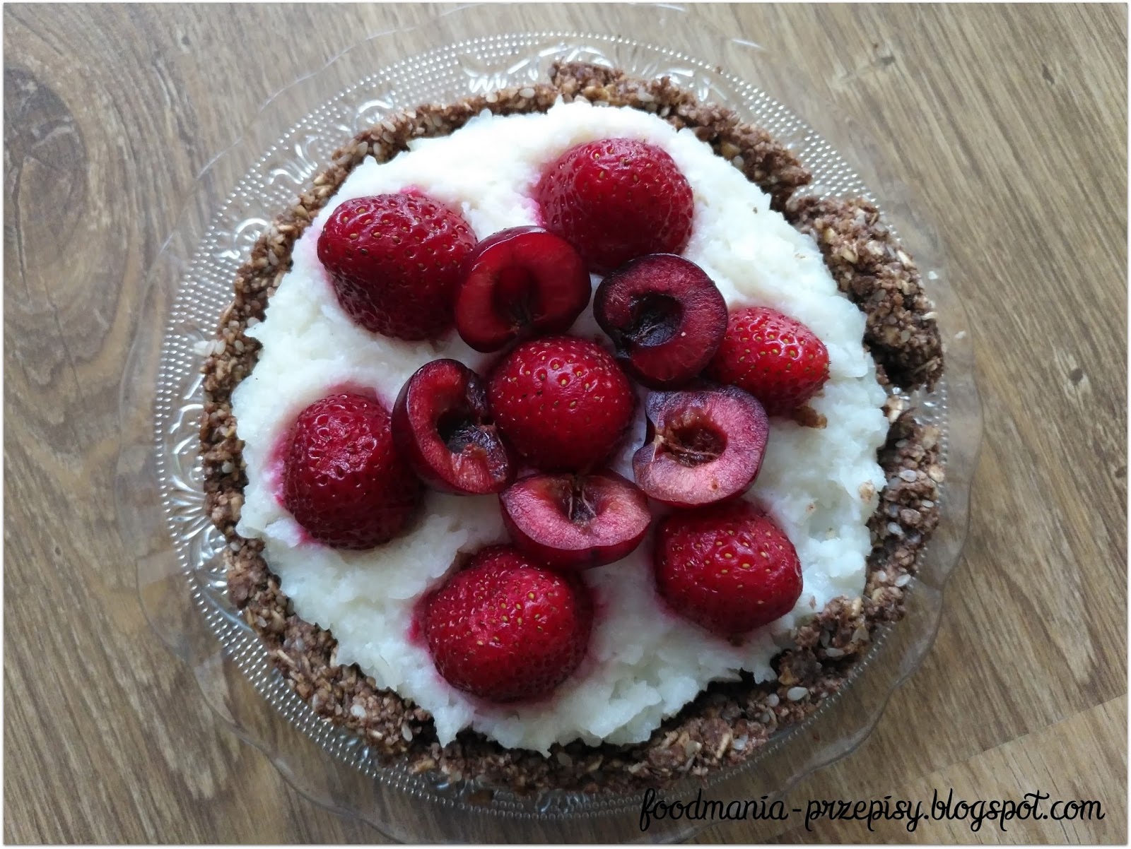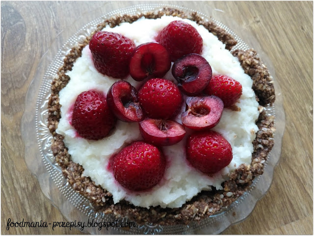 - Całość udekoruj truskawkami i czereśniami.