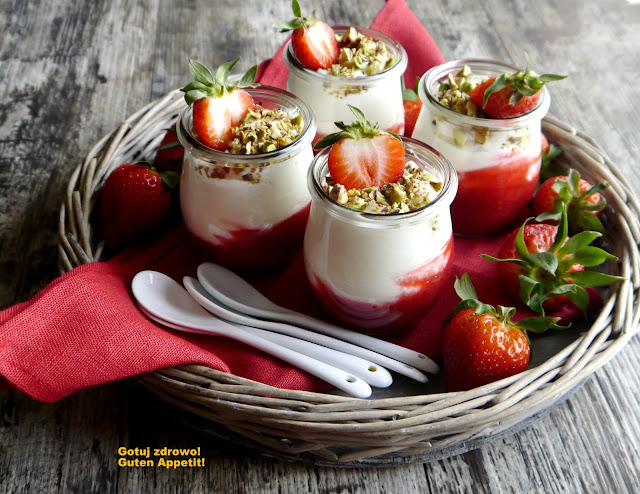 - podawać ze świeżymi truskawkami i posypany posiekanymi orzeszkami pistacjowymi