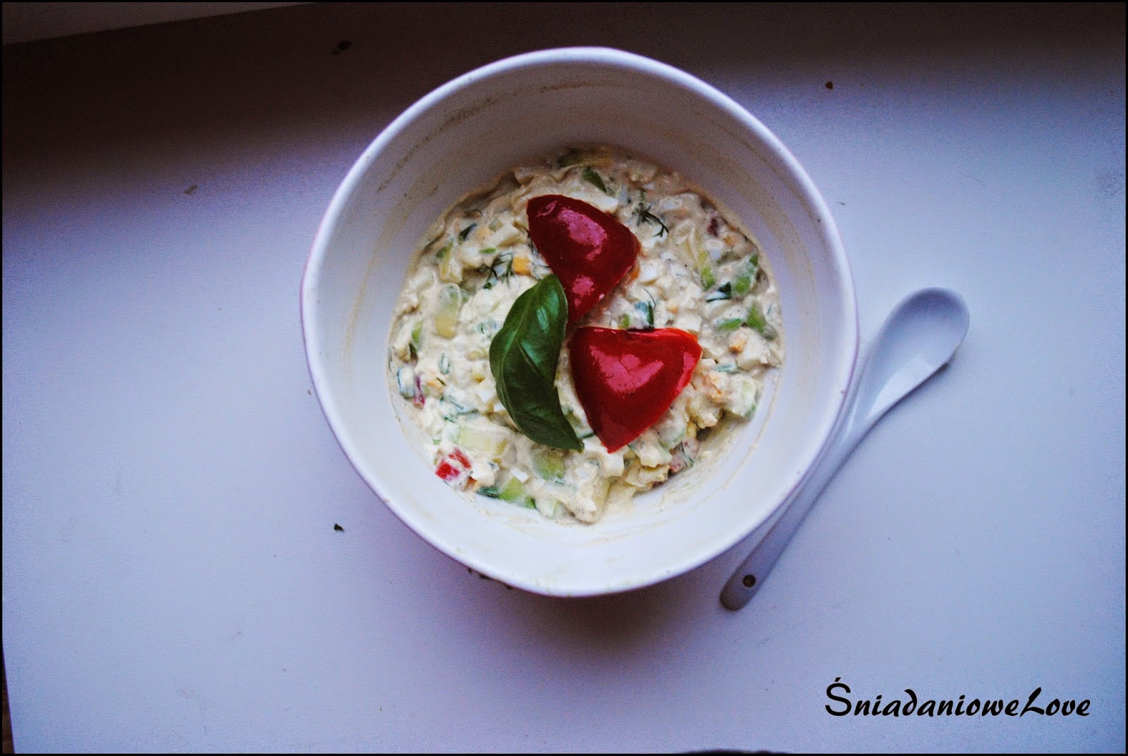 Sałatka ( awokado,papryką,jogurt,majonez,oregano,szczypiorek,jajko,bazylia,kukurydza,koperek)