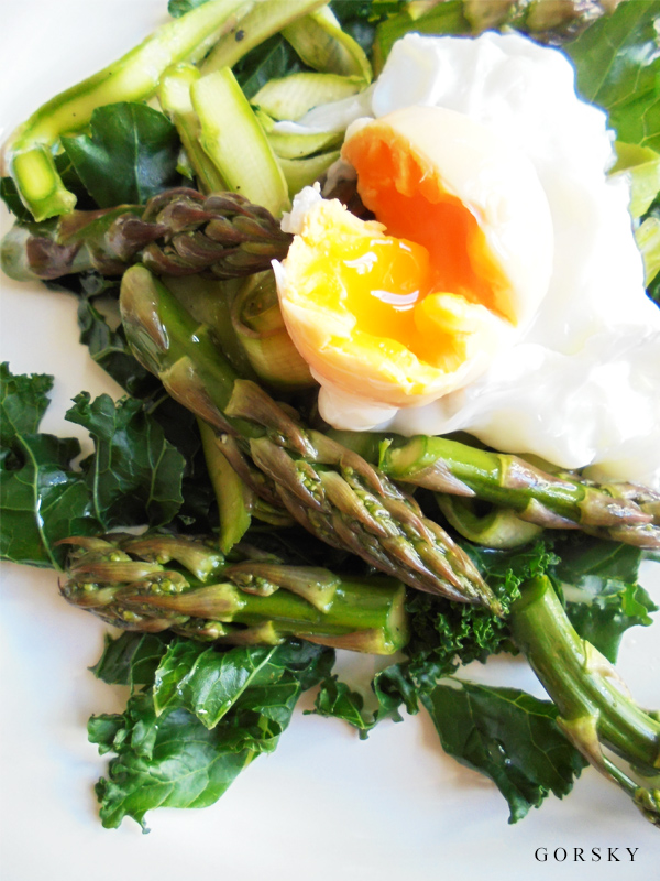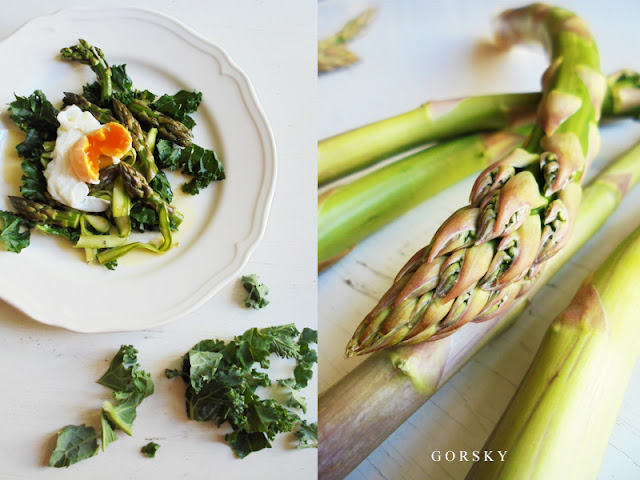 Sałatka ze szparagów... i moje nowe odkrycie JARMUŻ...połączenie doskonałe, bo bardzo zdrowe i witaminowe. Dodajemy oliwę z oliwek, pieprz, sól i doskonałość... jakim jest JAJKO... to klasa sama w sobie ...