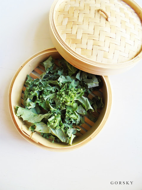 5/ jarmuż zmiękczamy na parze ok. 4 min