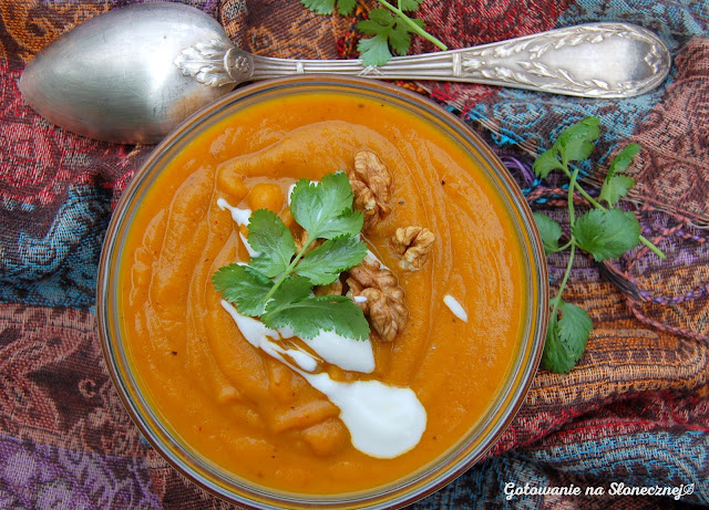 W takie dni warto zjeść dobrą rozgrzewającą zupę. Jak to na jesień przystało polecam rozgrzewający krem z dyni z dodatkiem imbiru i chilli.
