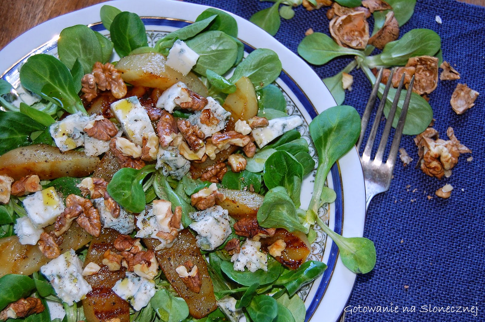 Proponuję prostą sałatkę z roszponką i grillowaną gruszką ...