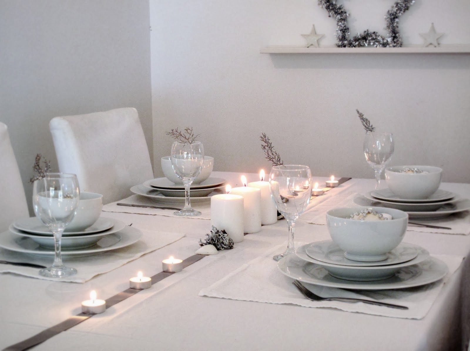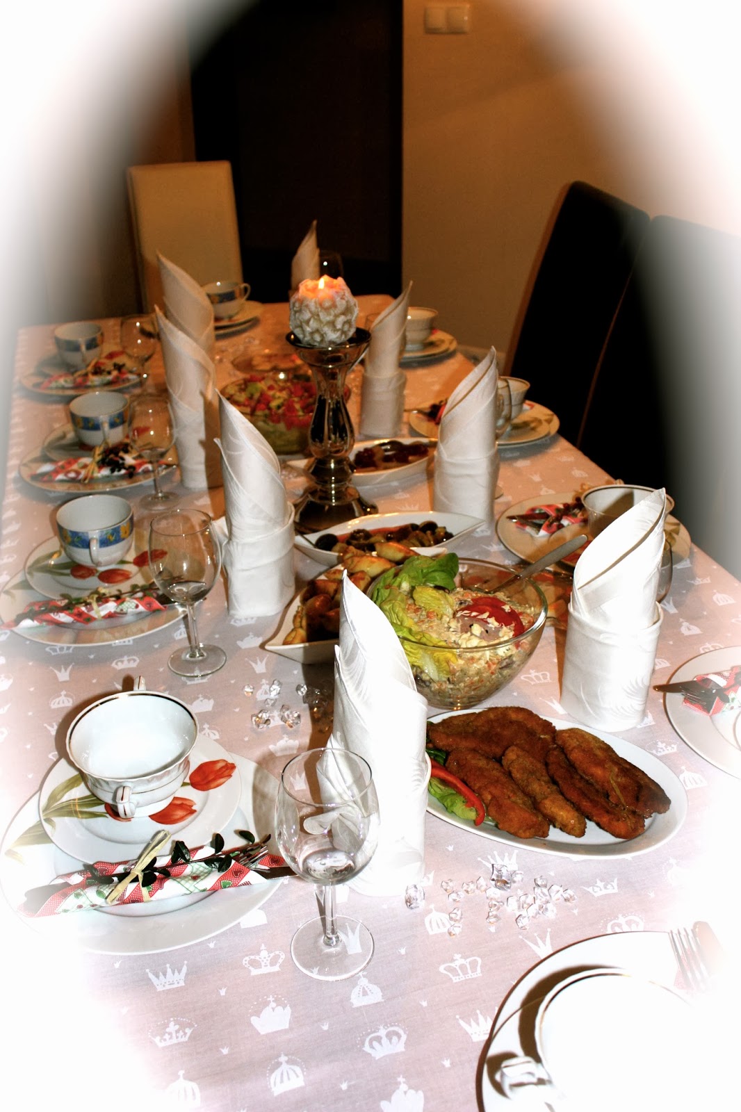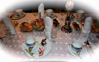 Choinka ubrana, prezenty zapakowane czas na stół wigilijny. Internet kipi od pięknych dekoracji na stole. Wszystkie te piękne stoły, które połykam wzrokiem maja jeden minus - brak miejsca na jedzenie. W Polsce przy 12 potrawach i świętach spędzanych w gronie rodziny, często licznej potrzeba dużo miejsca na stole na właśnie jedzenie. Dlatego ograniczamy się z mamą do ładnego obrusu, może być haftowany w świąteczne wzory, do pięknej świecy, chusteczek na talerzach (śmiesznych albo białych z materiału) oraz drobnych kryształków, które wyglądają jak rozsypane granulki lodu, które i tak podczas jedzenia ktoś przesunie w kąt stołu. Zdarzają się akcenty zielonych gałązek. Niestety mam bardzo mało zdjęć mojego wigilijnego stołu, wynalazłam raptem 3 i to jeszcze nie obstawionego całkowicie. Ale obiecuję, że w tym roku się poprawię i na następny rok będzie jak znalazł.