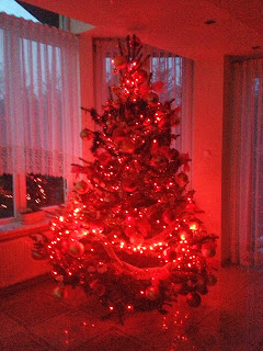 Od kiedy pamiętam w moim domu rodzinnym zawsze była ogromna, prawdziwa choinka. Ja teraz też nie wyobrażam sobie świąt ze sztucznym krzakiem. Co roku tata jeździ do leśniczówki i przywozi wielką choinę, która cudnie pachnie lasem i ma prawdziwe igły. Mój Mateusz też i w tym i w ubiegłym roku pojechał do leśniczówki... tfu... marketu i przywiózł żywą choinkę. Co do jej wystrojenia do rzecz gustu, każda jest piękna jak sprawia domownikom frajdę przy jej dekorowaniu. Ja preferuje styl jedno lub dwukolorowy. Pamiętam minę mojego męża w sklepie jak mu oznajmiłam, że chcę mieć ubraną choinkę na różowo w tym roku... Po 15 minutach wyszliśmy z biało - turkusowymi bombkami... Ale różową i tak kiedyś będę miała...