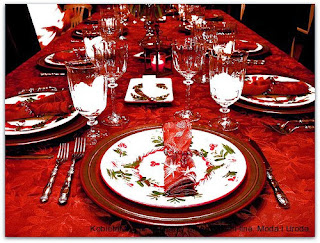 Kilka osób pytało się mnie o dekoracje świątecznego stołu, pakowanie prezentów i tym podobne historie związane ze Świętami Bożego Narodzenia - jak dla mnie najpiękniejszymi świętami w całym roku. Nie miałam tego w planach na blogu kulinarnym, ale w zasadzie dlaczego nie? W końcu co niektórzy jedzą również oczami, a ja jestem tego doskonałym przykładem. Jak już wspominałam nie zwlekam z prezentami na ostatnią chwilę, tak samo jak z dekoracjami świątecznymi czy choinką. Z jednej strony, by się tym wszystkim nacieszyć, a z drugiej, że ja po prostu się Świąt nie mogę doczekać! W tej kwestii jestem jak dziecko, które odlicza dni do gwiazdki i moją wielką słabością są również i prezenty, które wręcz uwielbiam dostawać! Oczywiście nie jestem też zwolennikiem sztucznego napędzania okresu przedświątecznego. Jakże byłam oburzona w pierwszy dzień po Dniu Wszystkich Świętych wchodząc do sklepu, gdzie dźwięcznie brzmiały dzwoneczki z głośników, a znicze zastąpiono czekoladowymi Mikołajami i dekoracjami świątecznymi (w niektórych sklepach stało i jedno i drugie, obok siebie). W listopadzie to już jest gruba przesada... Obawiam się że 2 stycznia w sklepach zaczną się pojawiać zające na Wielkanoc. Od Mikołajek czuję już nastrój świąteczny i sama chętnie ruszam z przygotowaniami, bo nie lubię tak przyjemnych rzeczy pozostawiać na ostatnią chwilę i latać potem wściekła z wywieszonym jęzorem. Przecież to czysta przyjemność, a przyjemnościami należy się delektować.