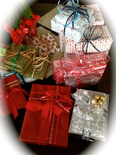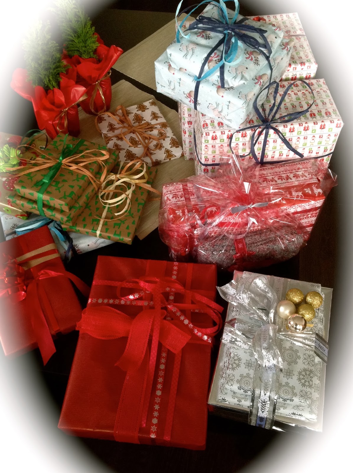 Uwielbiam prezenty dostawać, jakiekolwiek (nigdy nie wiem co chcę dostać) byle dużo i często, ale całe szczęście lubię też je dawać innym. Nie mam trudności z doborem prezentów, bo w sklepach jest cała masa super artykułów nadających się na prezenty: kosmetyki, super książki, bajeranckie skarpety dla zmarzlaków, gadżety elektroniczne, a jak ktoś ma jeszcze hobby to w ogóle z górki leci. Dodatkowo każdy sklep ma przygotowaną specjalną ofertę prezentową i zawsze można coś ciekawego znaleźć. Dlatego 3 godz w sklepie plus wieczór przy komputerze na zakupy online i prezenty załatwione. A od razu zaznaczam, że status żony sprawił, że rodzina mi się nie podwoiła, a co najmniej potroiła, bo mój wybranek całkiem sporą rodzinkę posiada. Z racji tego pakowanie prezentów zajmuje co najmniej dwa wieczory, bo każdy prezent musi być inaczej zapakowany i w stylu dopasowanym pod jego docelowego właściciela. Bratu można w renifery prezent zapakować, dzieciakom w kolorowe papiery zwracające ich uwagę, ale teściowej to już wytworniej trzeba przyozdobić ;p Co roku kupuję kilka rolek papierów i wstążek, z roku na rok zostaje mi zawsze coś, więc jest w czym wybierać. Choć muszę przyznać, że w tym roku wyjątkowo Ikea i Empik mnie bardzo zawiedli i ciężko było mi coś ciekawego znaleźć. Dodatkowo co roku poluję na Wigilii na wstążki i ozdoby z otwieranych prezentów, zanim dziadek albo tata nie zbierze wszystkich śmieci i nie zaniesie do spalenia ;p