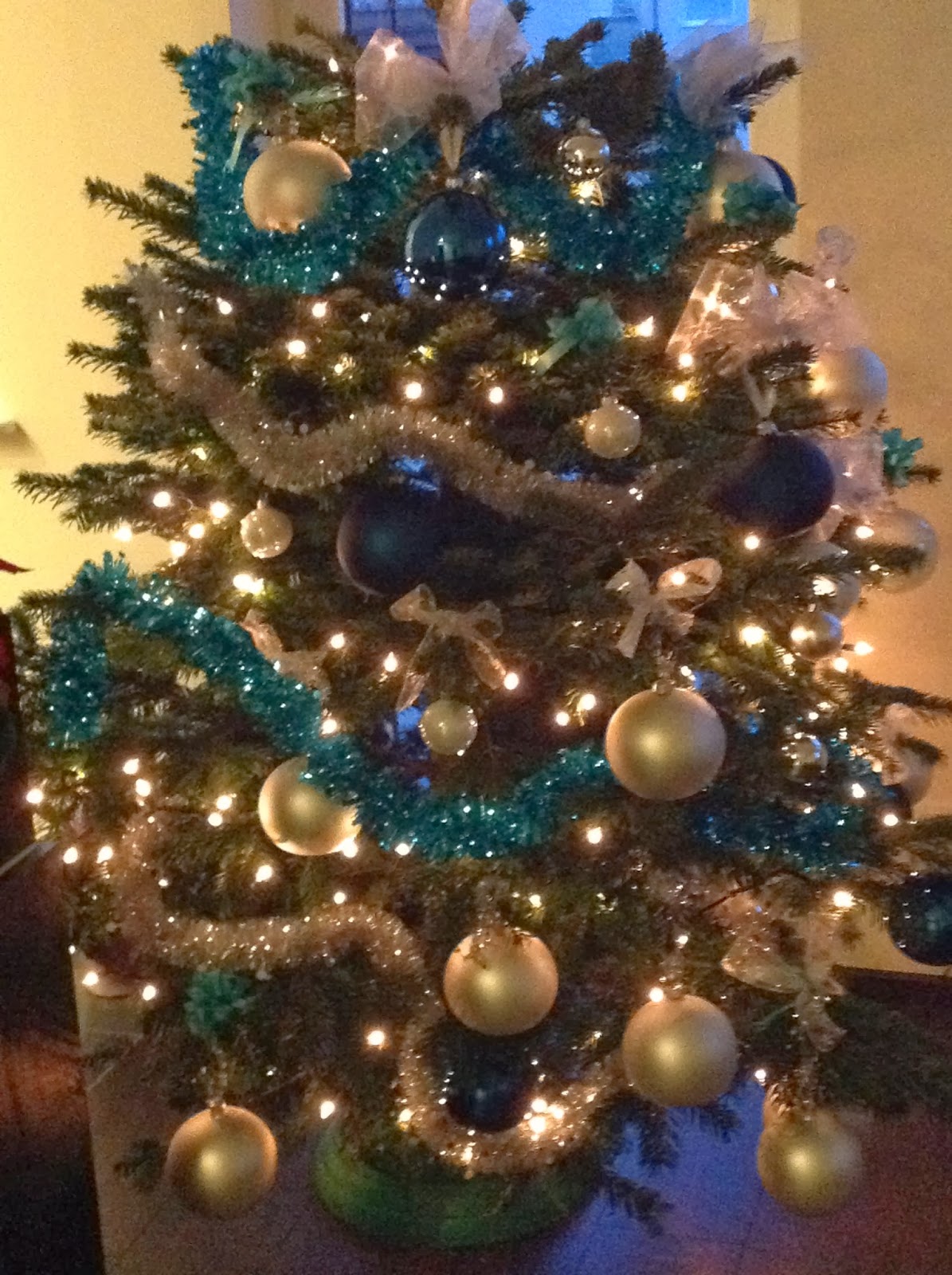 Drugą choinkę ubieram zawsze u rodziców na złoto - bordowo, a babcia preferuje granat: