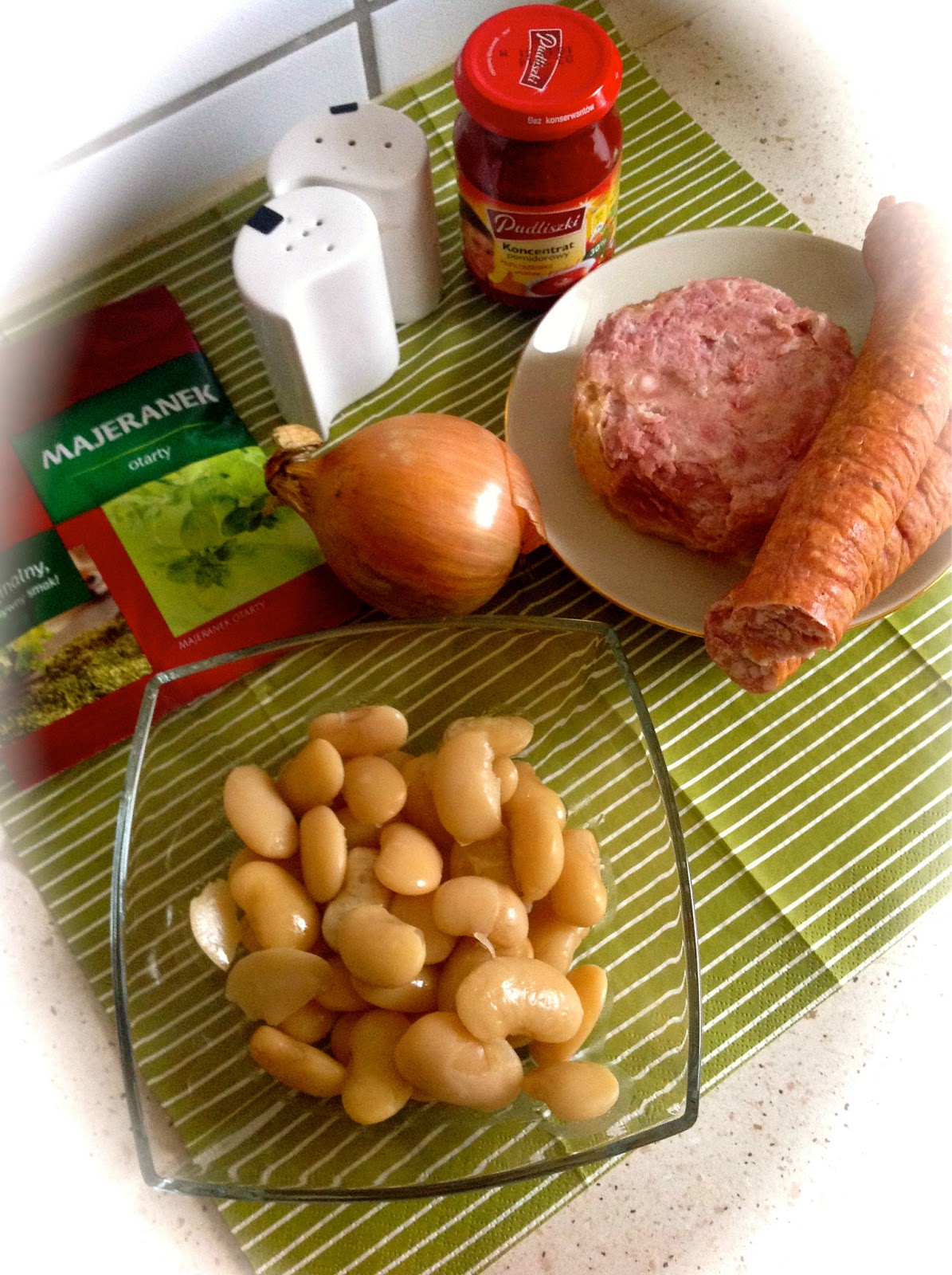 Dzisiejszy post to mój ulubiony smak studencki, ponieważ moja mama namiętnie na moje prośby wekowała mi fasolkę po bretońsku, a ja potrafiłam się nią żywić w sposób ciągły, jednostajny i nieustający. Po ostatnim szaleństwie makaronowym szukałam nowego smaku w mojej kuchni i wpadłam na pomysł zrobienia tego strączkowego dania po raz pierwszy. Skomplikowanego mięsa tutaj nie ma, więc kości nie stanowiły problemu ;) Po konsultacji telefonicznej z mamą ruszyłam na zakupy po pięknego Jasia. To że fasola się nazywa Jaś, to pewnie po Janie Fasoli, ale dlaczego piękny? Fasola był wręcz odwrotnie...