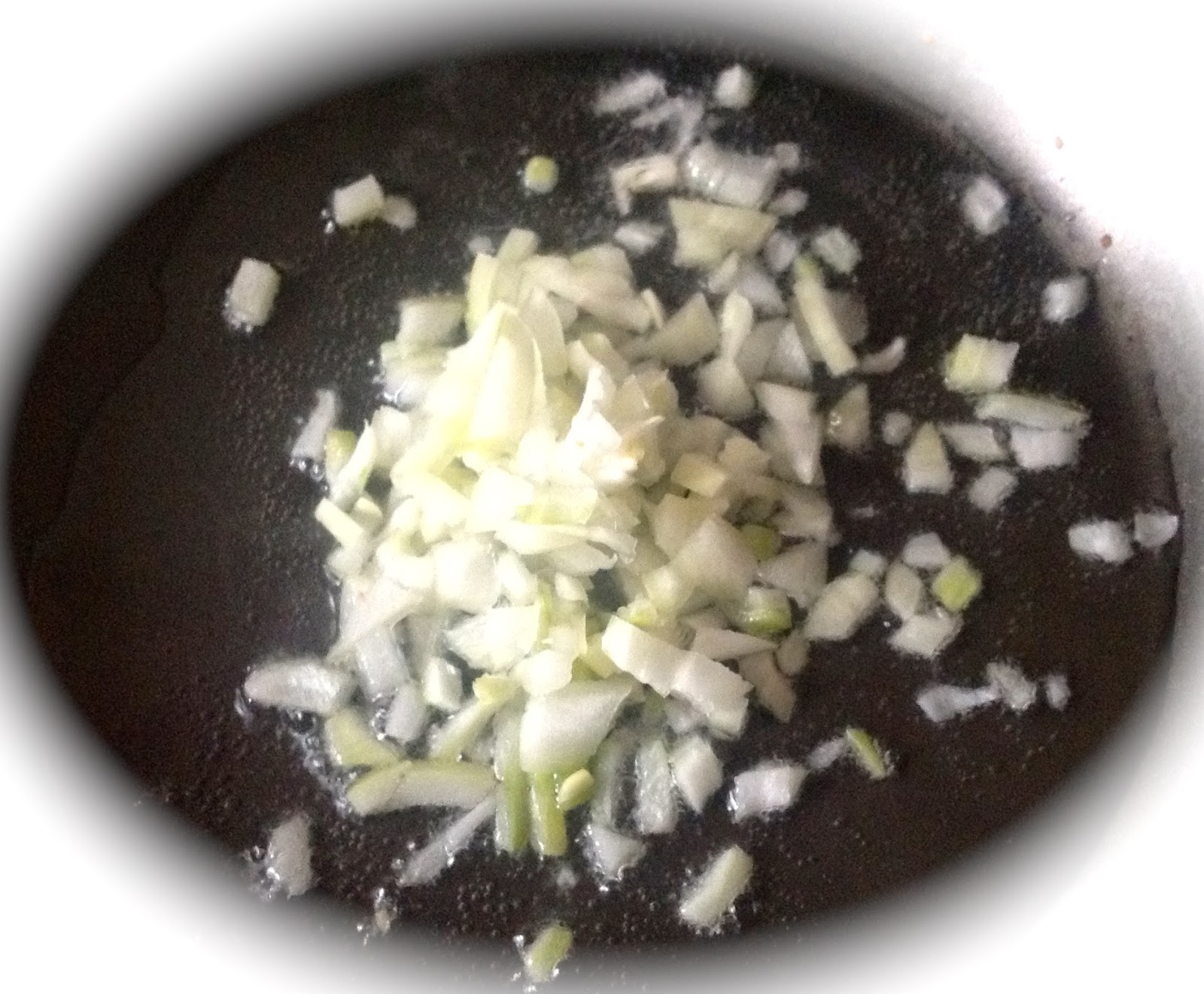 2. Cebulę kroimy na małe kawałeczki i podsmażamy lekko na patelni z rozgrzanym olejem.