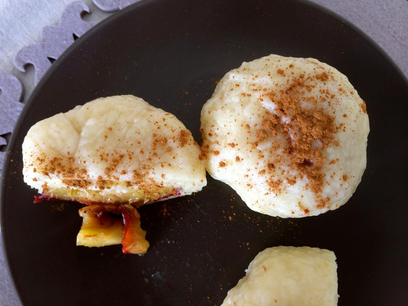Knedle naprawdę były super, miałam wspaniałą ucztę, ale mój mąż jednak śliwek nie lubił. Zjadł jednego knedla ze śliwką, a potem wciągnął jeszcze kilka, ale samego ciasta, a śliwki wydłubał ;(