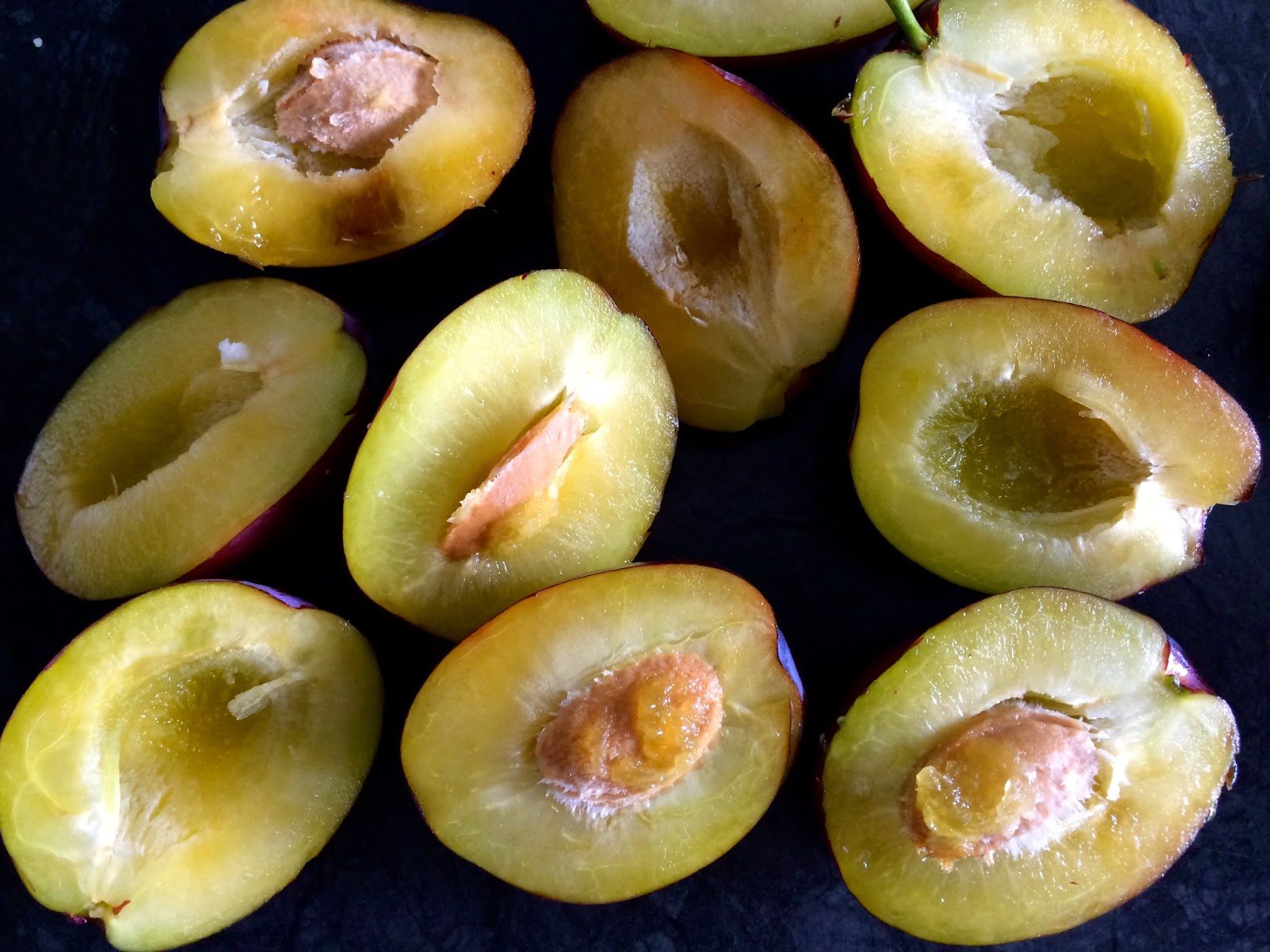 8. Śliwki myjemy, kroimy na pół i wyciągamy pestki ze środka.
