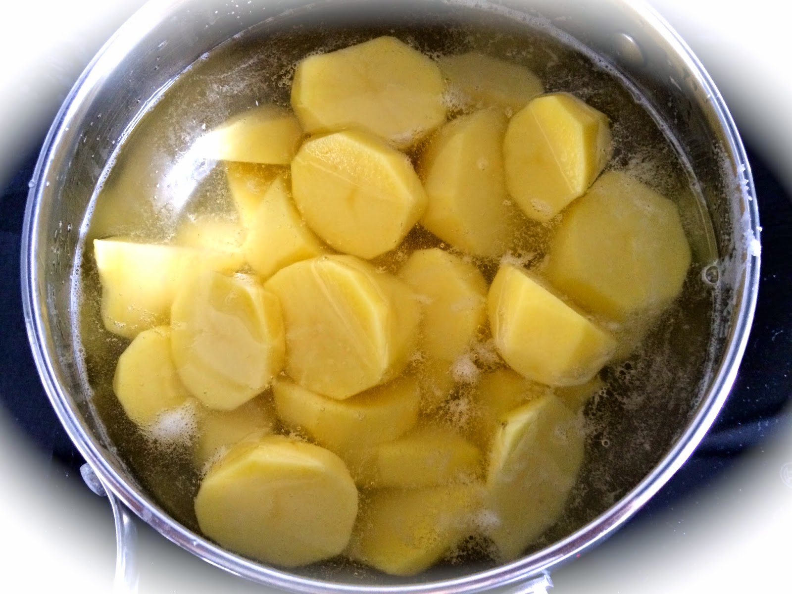 1. Ziemniaki obieramy, kroimy i gotujemy w osolonej wodzie.