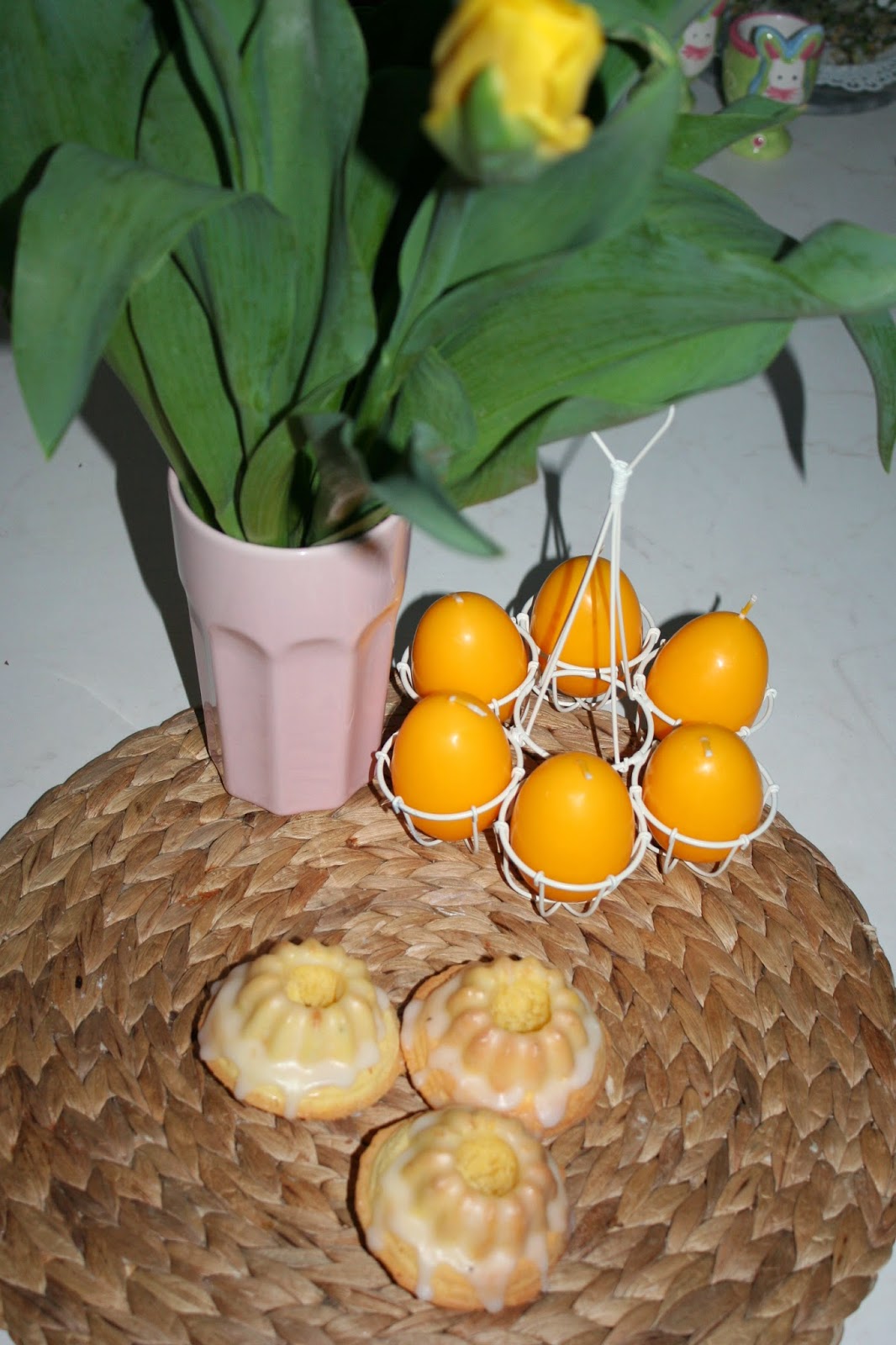 Przez ostatnie kilka tygodni dni przeciekają mi przez palce. Nawet się nie obróciłam, a tu już nadszedł Wielki Piątek. Całe szczęście, po całym tygodniu bieganiny między uczelnią, pracą a kursem nadszedł dzień wolny (a przede mną jeszcze 3 kolejne, nie licząc nocy ;) ) i miałam czas na Świąteczne przygotowania. Dziś pokażę Wam świetną alternatywę do święconki - zamiast kroić kawał z dużej, świątecznej baby możemy włożyć małą babeczkę. Prezentuje się to bardzo ładnie i jest praktyczne (zajmuje na prawdę mało miejsca).