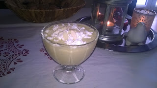 połówka mangojeden banan60 g sera twarogowego półtłustego60 g jogurtu naturalnegoszczypta cynamonupłatki migdałowe