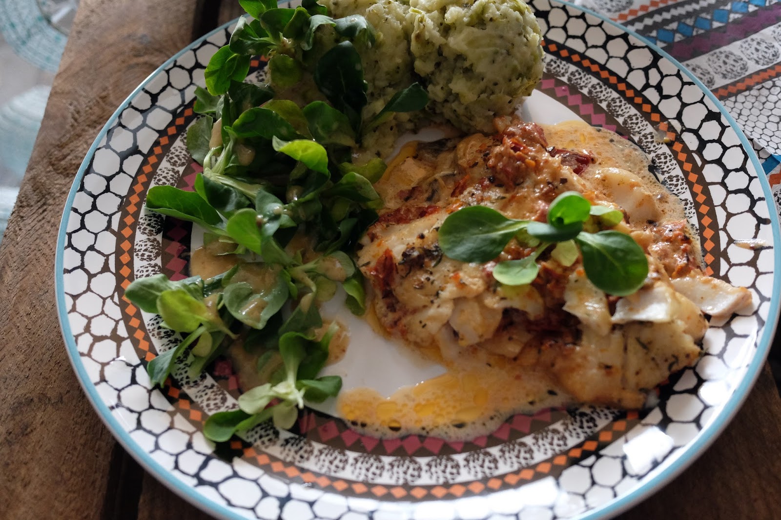 Dorsza możemy podać z ryżem, kaszą kuskus lub jaglaną albo z moją dzisiejszą propozycją - puree z ziemniaków z brokułami: ziemniaki tłuczemy z ugotowanym brokułem, dodajemy łyżkę masła i mleko/śmietanę 30%, tłuczemy do połączenia składników.