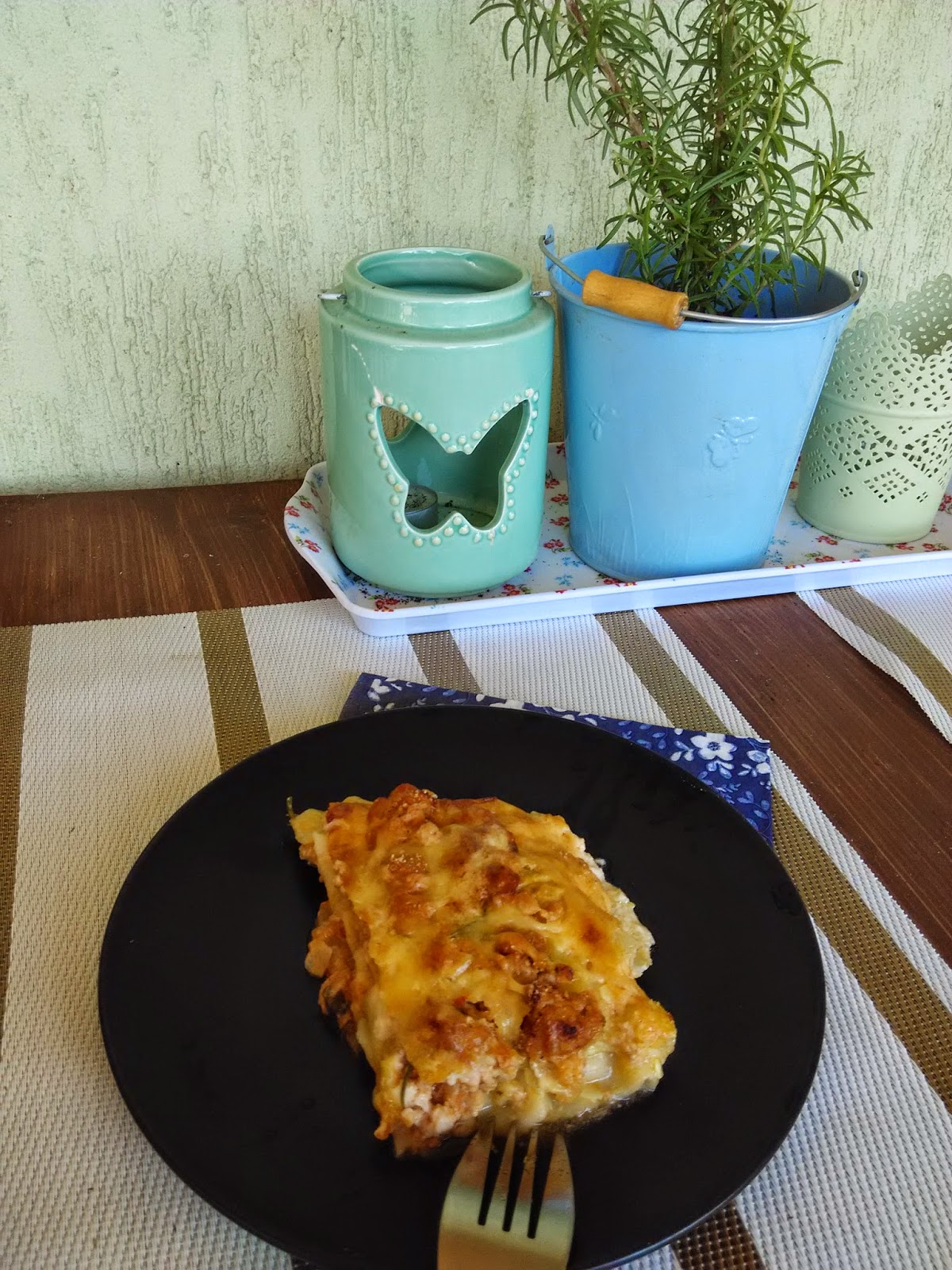 Naczynie żaroodporne smarujemy olejem. Wykładamy warstwami najpierw płaty makaronu, następnie cukinię, nadzienie i znów - makaron, cukinia, nadzienie. Gdy wyłożymy warstwami wszystkie składniki, polewamy wszystko sosem beszamelowym i posypujemy stratym żółtym serem.