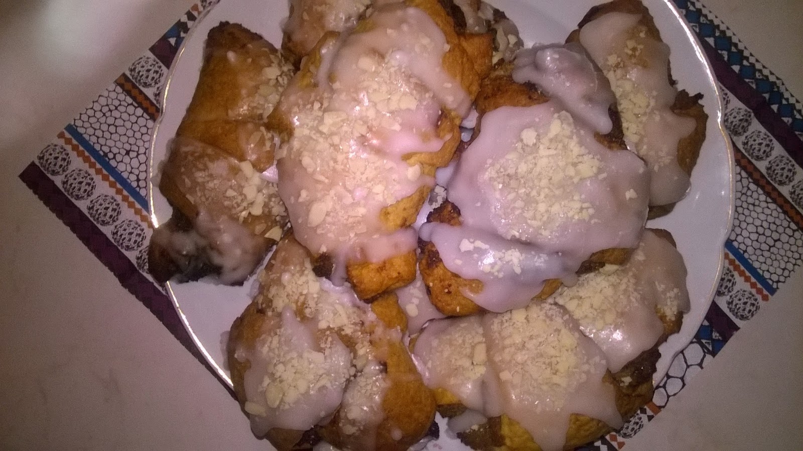Lukier: cukier puder + gorąca wodaMigdały do posypania rogali