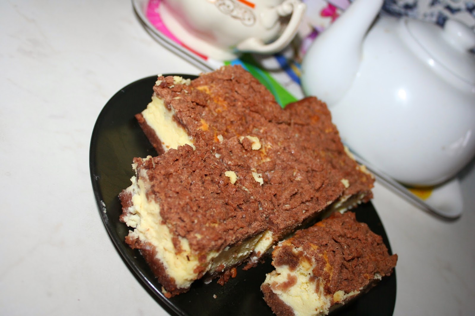 Blachę wysmarowaną masłem wykładamy kruchym ciastem, zalewamy masą serową. Na koniec ścieramy na tarce o grubych oczkach ciasto kruche chłodzące się w zamrażalce.