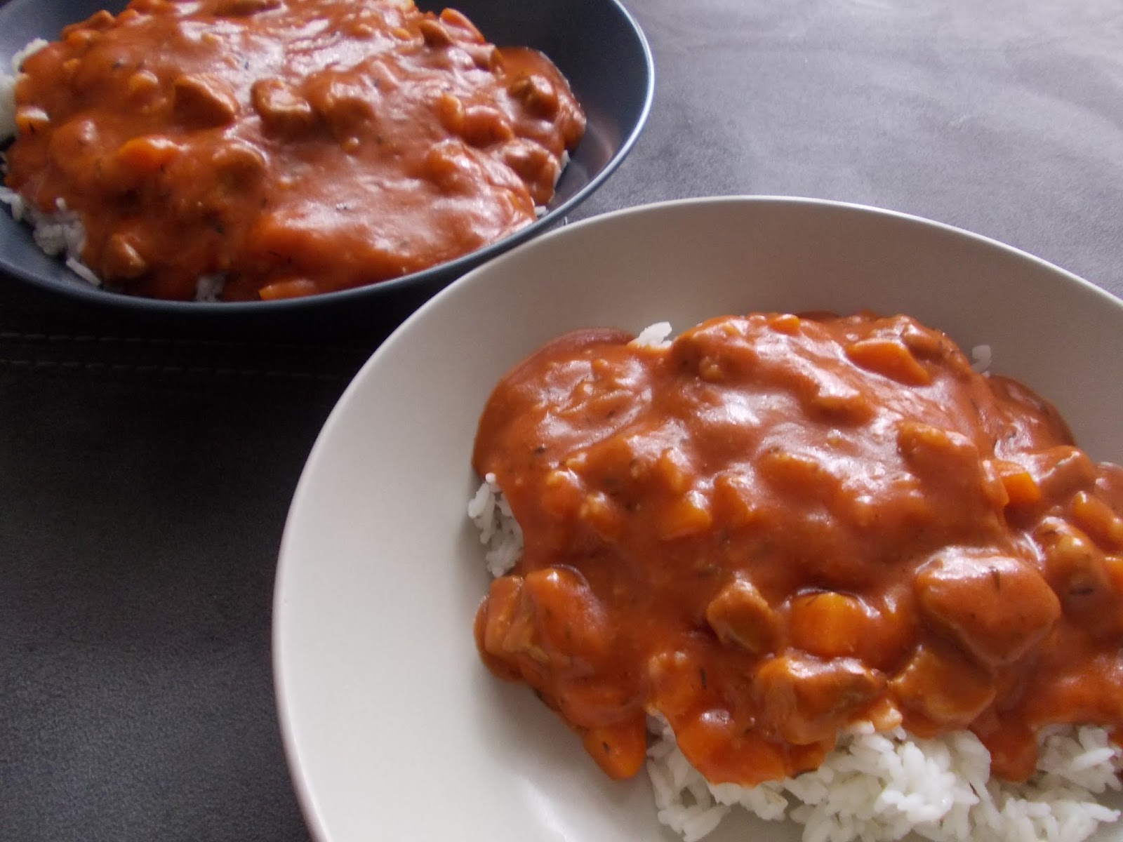 Duszę gulasz na małym ogniu pod przykryciem do miękkości mięsa- około godziny. Co jakiś mieszam. W razie potrzeby podlewam wodą. Jeżeli wolicie gęsty sos (jak ja), zagęszczacie sos odrobiną mąki rozrobioną w mleku lub wodzie.