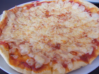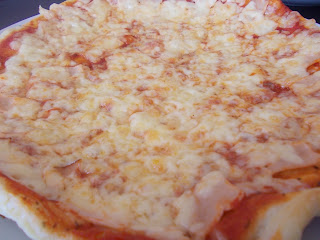 Wyrośnięte ciasto dzielę na 3 części, obsypuję mąką, kolejno rozwałkowuję na cienkie placki podsypując dodatkową mąkę. Kładę je na posmarowanych oliwą blachach, odstawiam na 30 minut do wyrośnięcia. Pizze smaruję sosem pomidorowym, posypuję oregano, układam szynkę oraz posypuje startym serem (według uznania). Piekę w nagrzanym do 220 stopni piekarniku przez 20minut.