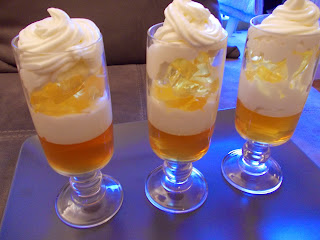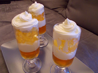 Śmietankę ubijam na sztywno, dodaje cukier puder i stopniowo serek mascarpone, by usztywnić krem. Wykładam część masy na galaretkę. Następnie drugą galaretkę kroję w kostkę i przekładam na krem. Resztę kremu przekładam do rękawa i tworzę piękny wzorek:)