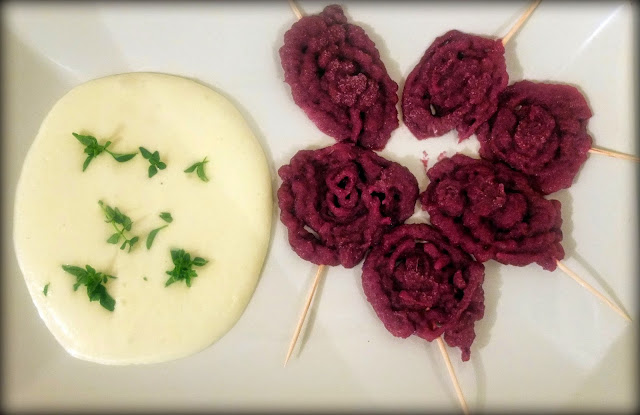 Talerz lub deskę wykładamy papierem do pieczenia, układamy wykałaczki. Za pomocą rękawa wyciskamy masę cebulową na papier do pieczenia. Wkładamy do zamrażalnika i zostawiamy na minimum