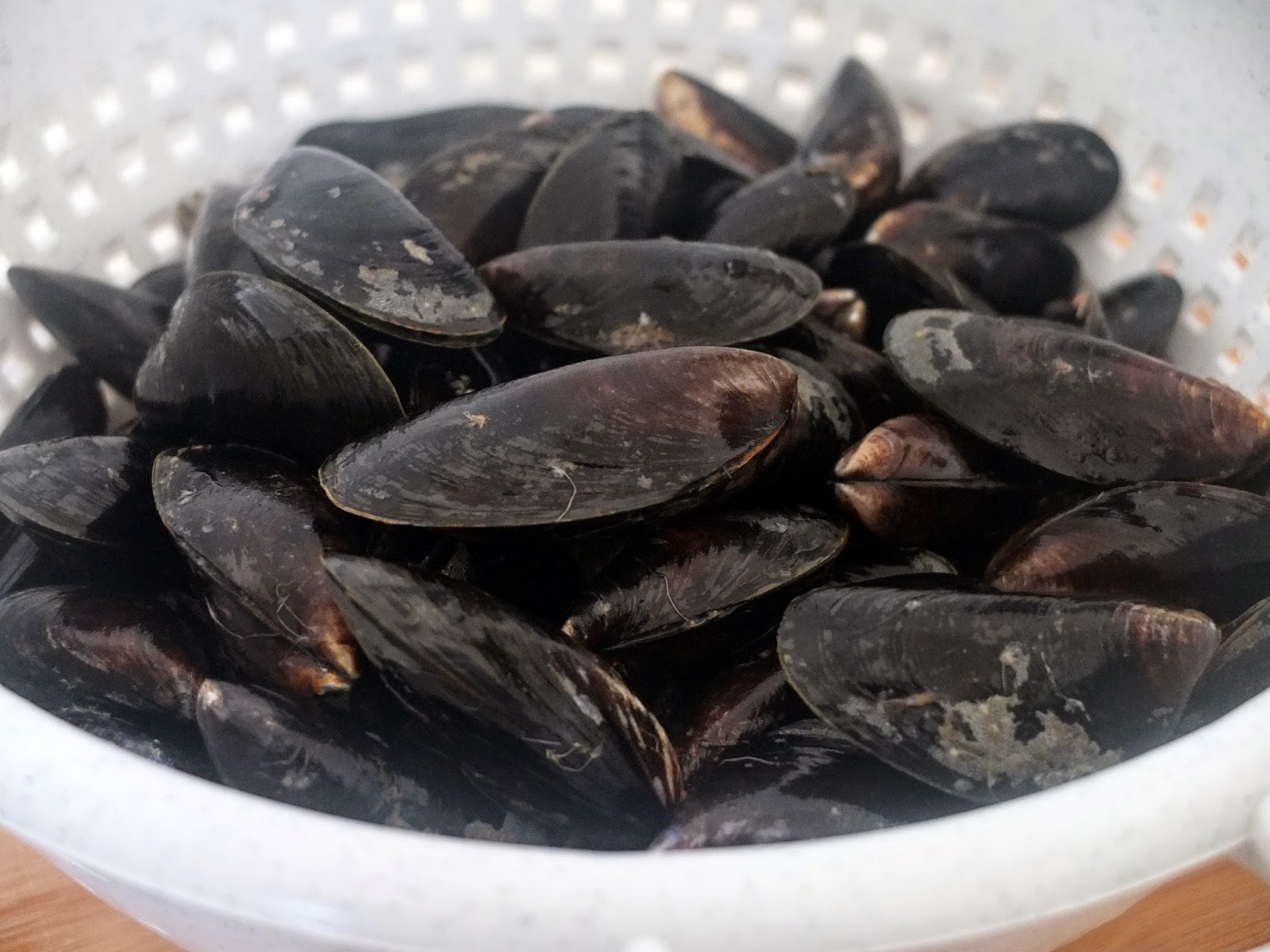 Mule nie należą do taniego dania, ale myślę że raz w życiu można się pokusić i spróbować tego rarytasu. Dla niektórych może być to nie małe wyzwanie, gdyż sam widok jest czasami odrażający czy obrzydliwy. Jednak te niewielkie małże wprost zachwycają swoim smakiem. Aby mule były w pełni świeże i cieszyły się smakiem wybieramy tylko te z zamkniętą muszlą. Wszelkie otwarte lub uszkodzone muszle należy wyrzucić. Muszlę, które po ugotowaniu nie otworzyły się również należy wyrzucić. Mule bardzo szybko tracą świeżość, dlatego najlepiej jeść je odrazu w dniu zakupu. Idealnie komponują się z różnymi składnikami np. szalotką, białym winem czy cydrem. Do tej pory mule przygotowywałem dwa razy, jedne w białym winie zaś drugie w cydrze. W cydrze bardziej przypadły mi do gustu i dlatego tym przepisem dziele się z wami. Przepis pochodzi z restauracji Francja elegancja, gdzie przeprowadzone były kuchenne rewolucje. Składniki:- kg muli