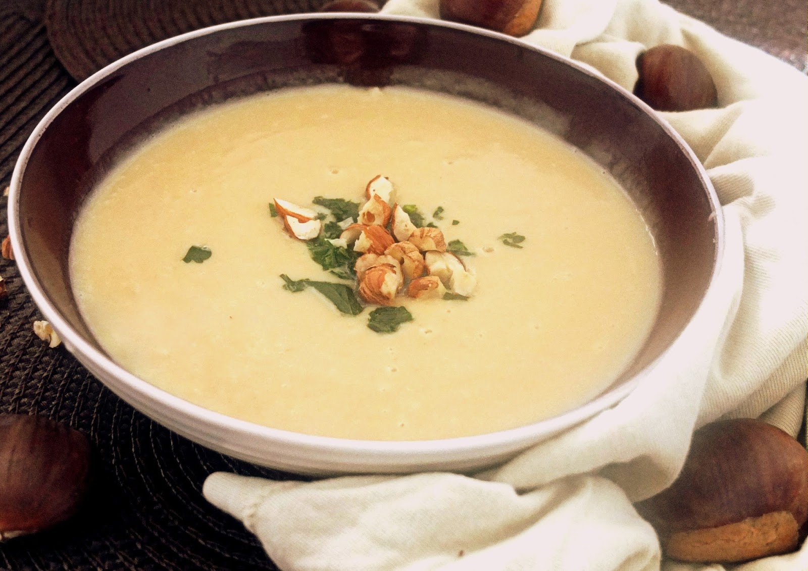 Jesień to czas wielu wspaniałych produktów które najświeższe dostępne są tylko w tę porę roku. Do jednych z moich ulubionych należą kasztany, które w ostatnich latach są coraz bardziej dostępne w różnych sklepach czy na targach. Kiedy widzę i czuje zapach upieczonych kasztanówto czuje już nadciągającą jesień. Ale nie pełną smutku i przygnębienia, ale przepełnioną wspaniałymi zapachami warzyw, owoców czy grzybów. Kasztany w połączeniu z takimi składnikami jak imbir czy kardamon nadają zupie charakterystyczny jesienny charakter i działają rozgrzewająco, dlatego jest to idealne danie na zbliżające się chłodne dni.
