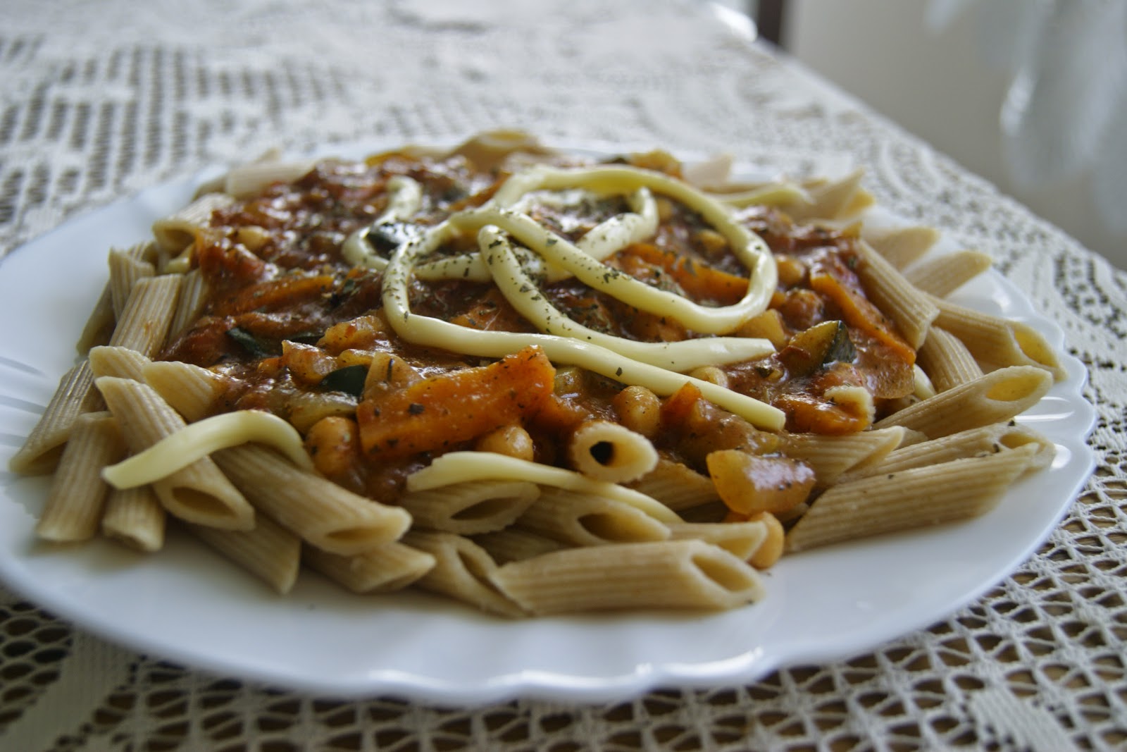 Penne w sosie pomidorowym z ciecierzycą po włosku