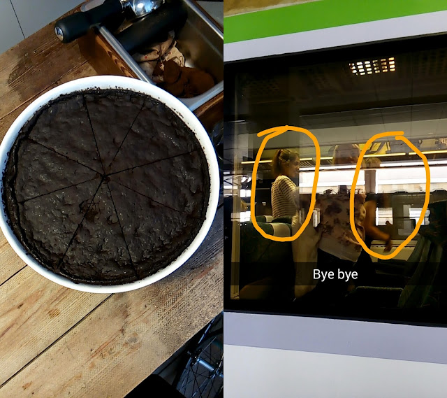 niektórzy zabrali ze sobą brownie; Zocha i Pam na pożegnaniu, po szukaniu peronów w ogromnym pośpiechu