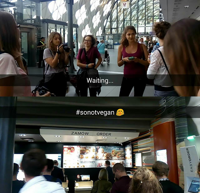 po przybyciu na dworzec, niektórzy zaliczyli kawę w bardzo niewegańskim Mac'u