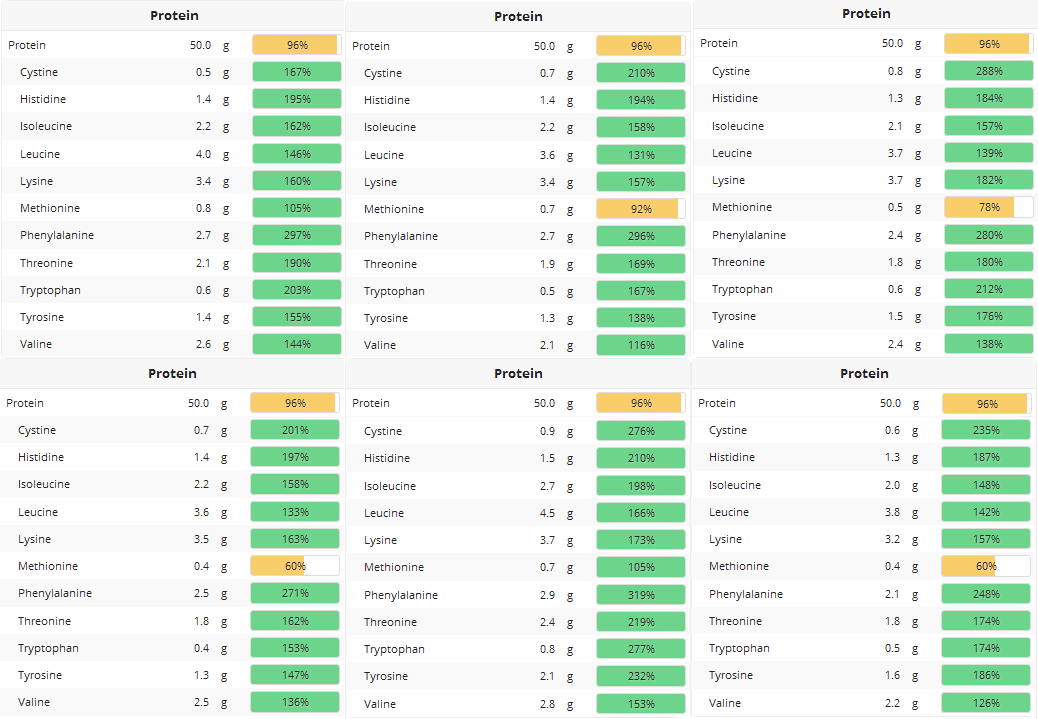 W zasadzie jedynym aminokwasem ograniczającym może być metionina, jest ona jednak obecna w dużych ilościach w ziarnach zbóż. Za pomocą włączenia roślin strączkowych do diety znacząco poprawiamy profil aminokwasowy jadłospisu.