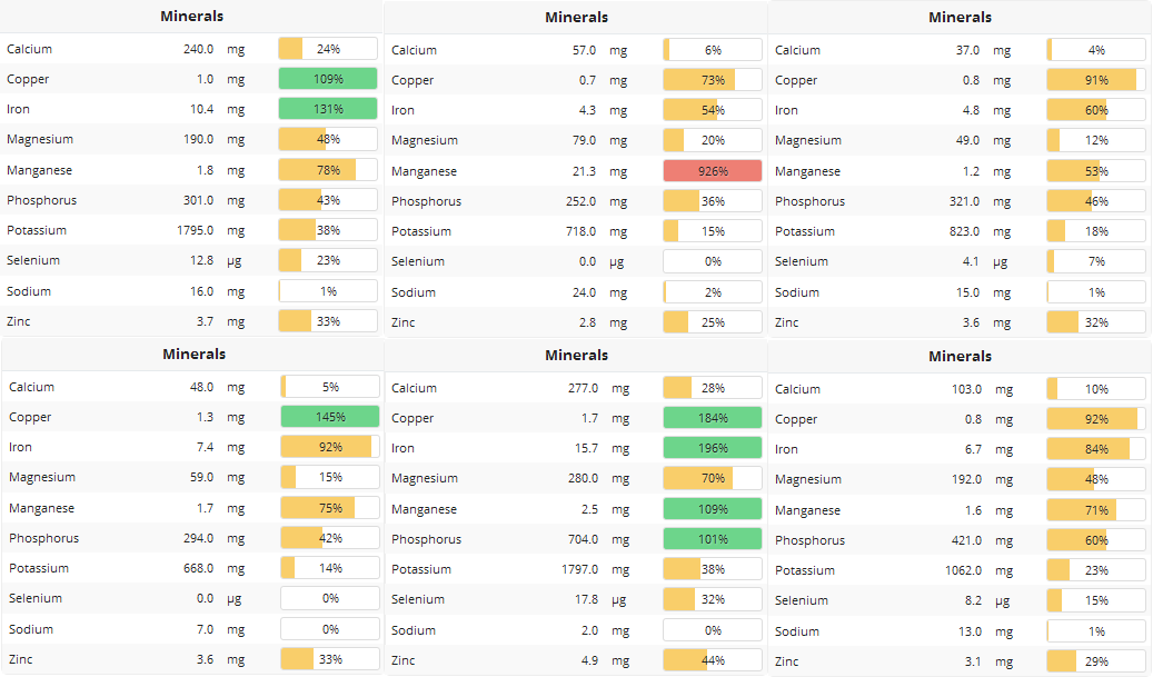 Znajdziemy w nich także ogromne ilości kwasu foliowego i dość znaczne ilości witamin z grupy B (oprócz B12!).